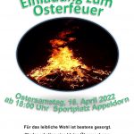 Osterfeuer 2023 – Wir laden herzlichst zum Appeldorner Osterfeuer am Platzhaus ein. Morgen ist es schon soweit. Es findet am Ostersamstag ab 18.00 Uhr statt. Für eine kleine Osterüberraschung wird auch gesorgt. Wir freuen uns auf euch.