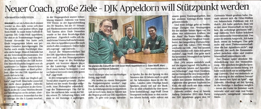 RP-Bericht – Neuer Coach, große Ziele – DJK Appeldorn will Stützpunkt werden — Keine Kommentare