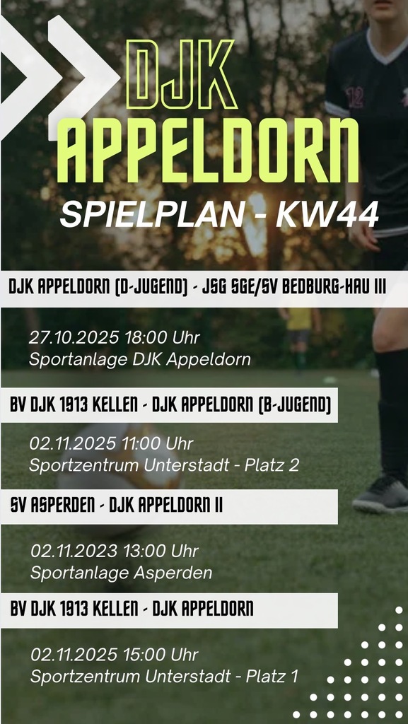 Spielplan für die kommende Woche (KW44) DJK Grün-Weiß Appeldorn Veröffentlicht am 26. Oktober 2025 von Thomas Mayer26. Oktober 2025 Screenshot