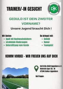 Unsere Jugendmannschaften von DJK Grün-Weiß Appeldorn e.V. suchen engagierte Trainerinnen und Trainer, die Spaß daran haben, Kinder und Jugendliche für den Fußball zu begeistern.